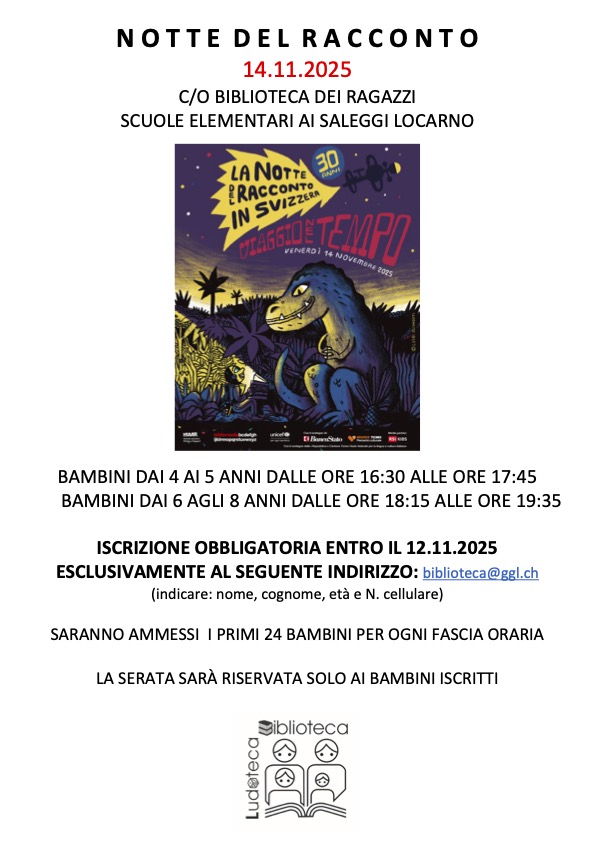 Notte del Racconto "Viaggio nel tempo" Biblioteca per ragazzi, Scuola Elementare Saleggi Locarno |